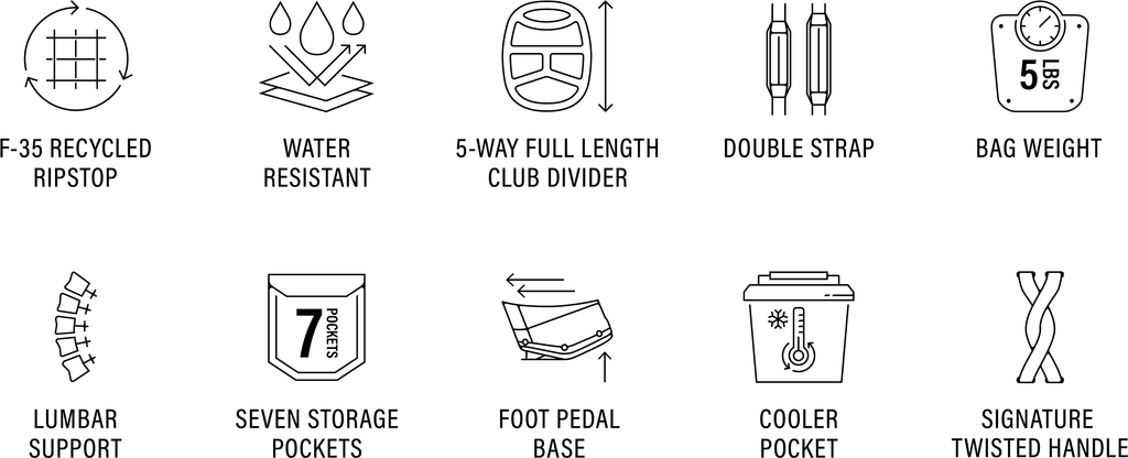 Designed with a versatile single or double shoulder strap configuration, the Trouper 3.0 is your ideal companion on the course. A large insulated front cooler pocket has enough space to keep four 16oz cans cold. The two newly improved fleece-lined valuable compartments and seven-pocket design secures valuables while allowing for straightforward access. A large five-way divider allows for simple organization and an easy pull for all 14 clubs, even with oversized grips. Simply put, the Trouper 3.0 delivers an effortless and reliable experience for any player round after round. Featuring All-New Straps and a bolstered stand mechanism.
